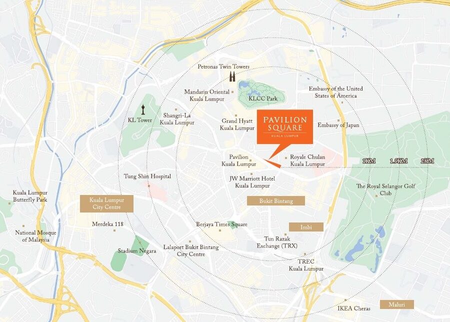 Pavilion Square 企業套房坐落於吉隆坡心臟地帶,結合日常便利與尊貴地段優勢,提供卓越的交通連接與生活配套,並設有專屬天橋直通 Pavilion Kuala Lumpur,讓零售與餐飲就在您家門口。
